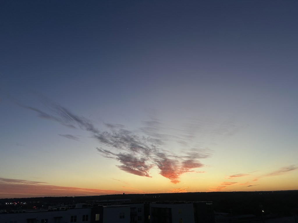 So excuse me if I watch the sunset with urgency. I swear it’s not some kind of morbid or grandiose notion that I don’t know which one will be my last. (That’s always been true anyway.) The sunset is as far into the future as I can think to function as of January 23, 2025. That’s a lie. Sometimes I think about Saturday night, but that’s a secret just for me. One day soon the sunset will laugh when the rooftop and I are gone and it’s just the battery of my iPhone 14 decomposing slowly on the scorched earth.